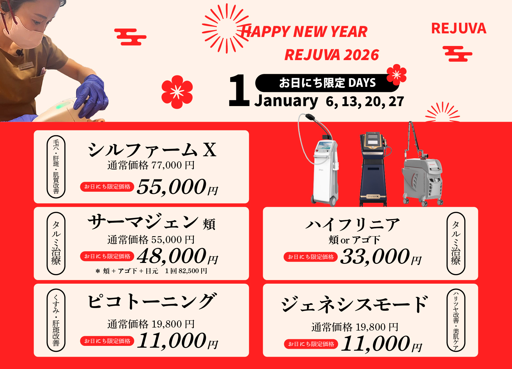 お日にち限定スキントリートメント特別価格でご案内