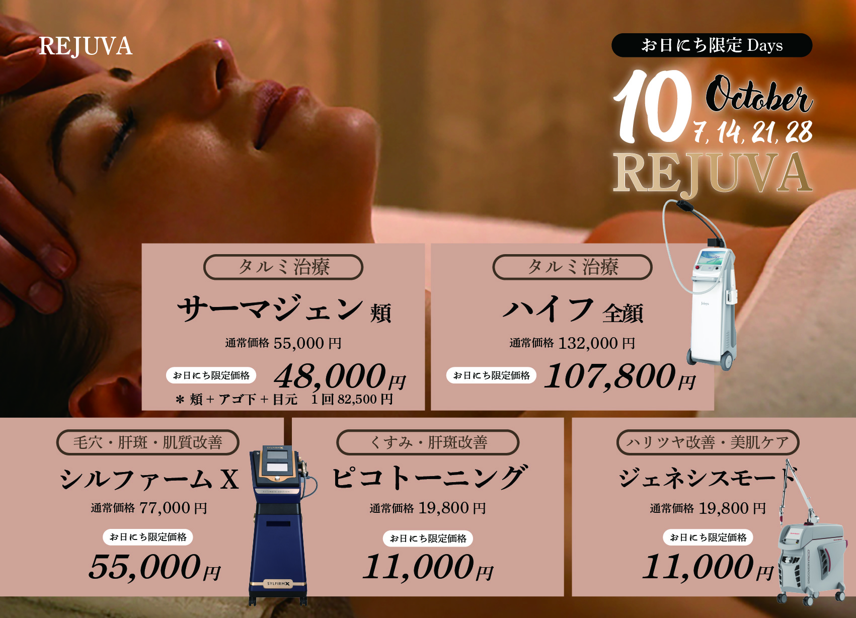 お日にち限定スキントリートメント特別価格でご案内