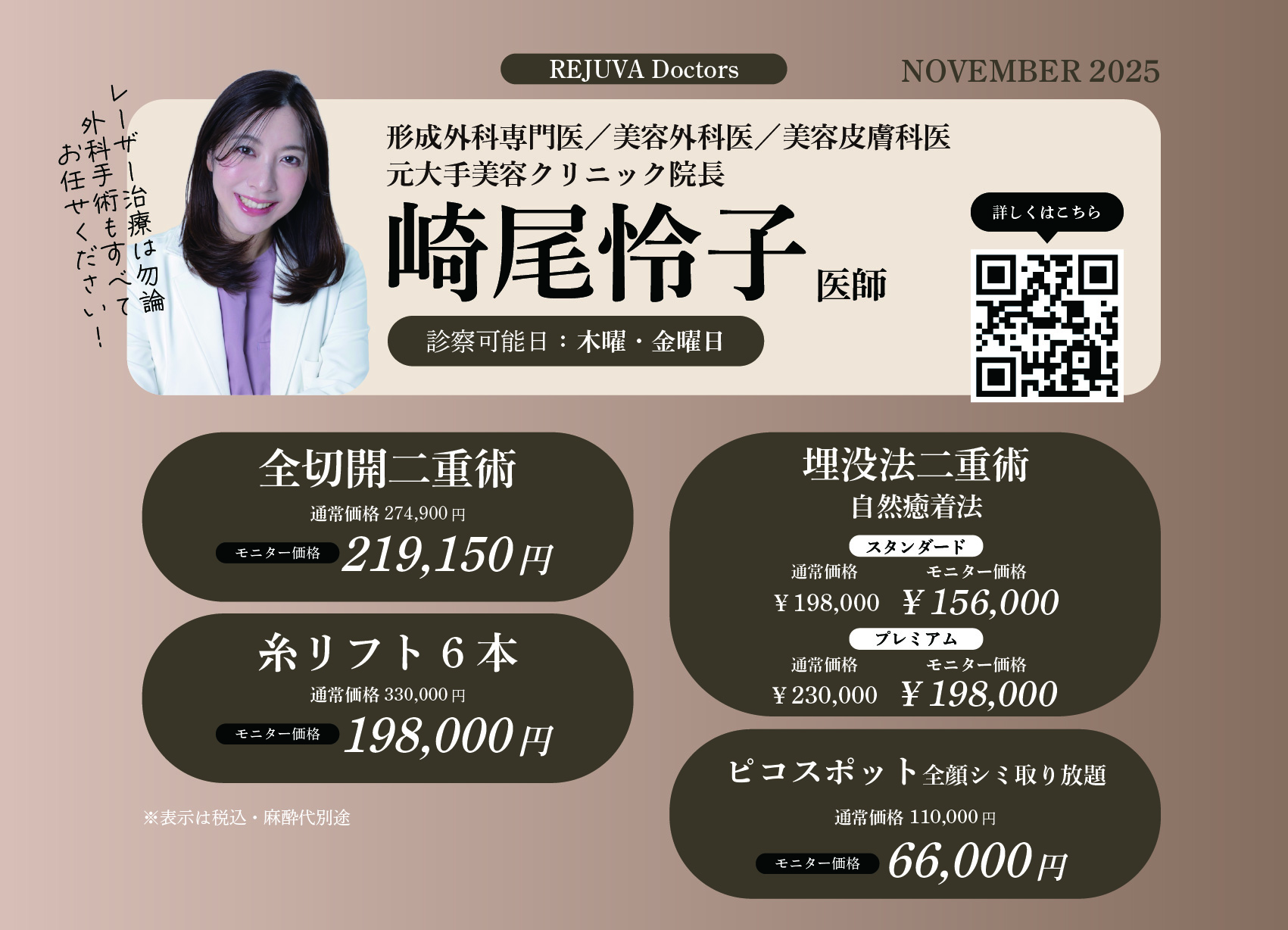 11月【崎尾 怜子 医師限定】特別価格のご案内 | 表参道レジュバメディカルクリニック