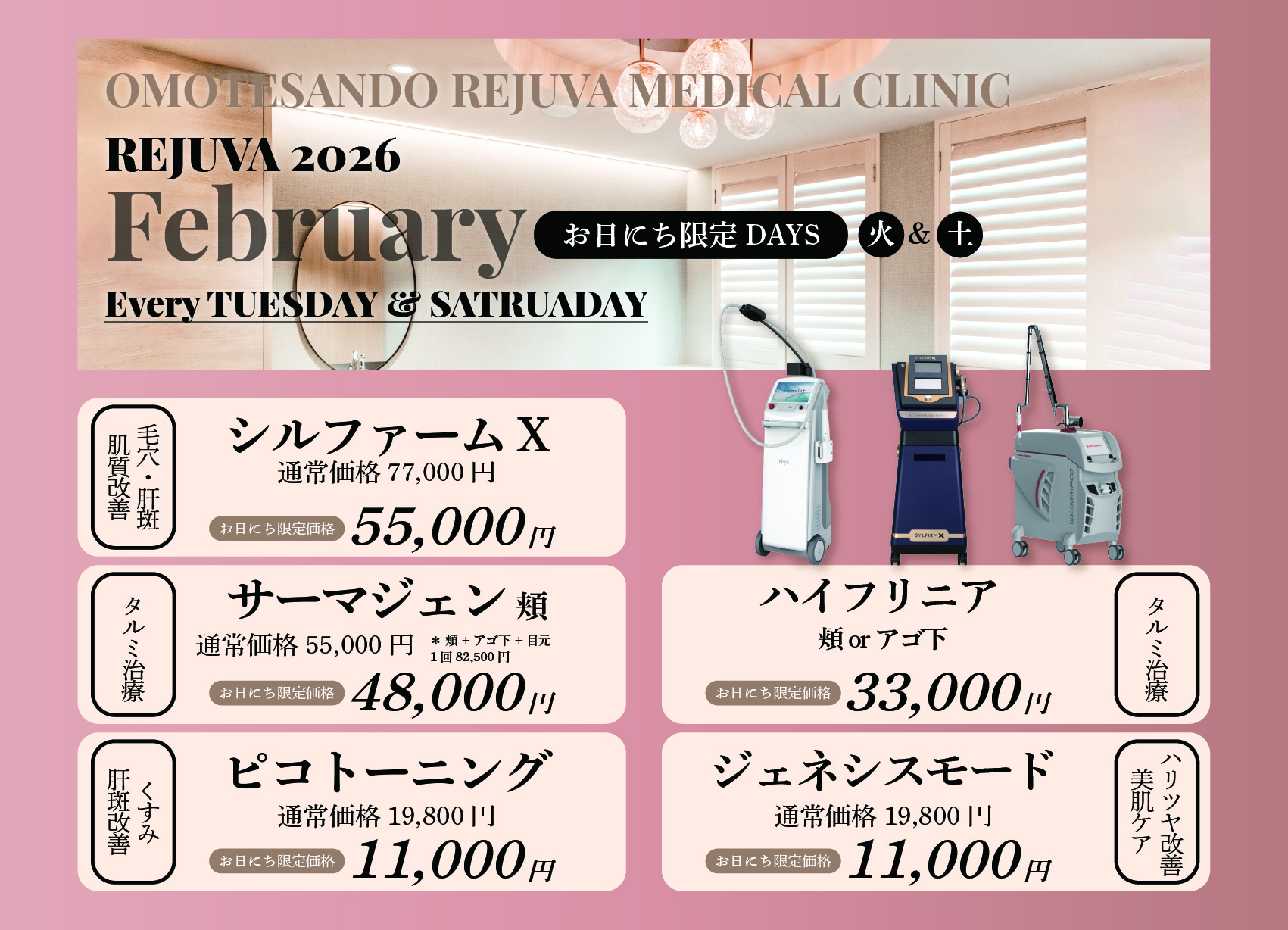 お日にち限定スキントリートメント特別価格でご案内